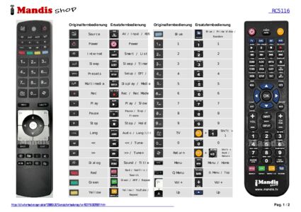 Ein Dokument ist enthalten, um die Verwendung der neuen Fernbedienung zu erleichtern, indem es die Tastenbelegung zeigt.