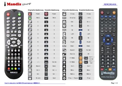 Ein Dokument ist enthalten, um die Verwendung der neuen Fernbedienung zu erleichtern, indem es die Tastenbelegung zeigt.