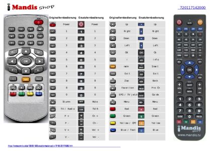 Ein Dokument ist enthalten, um die Verwendung der neuen Fernbedienung zu erleichtern, indem es die Tastenbelegung zeigt.