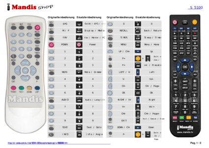 Ein Dokument ist enthalten, um die Verwendung der neuen Fernbedienung zu erleichtern, indem es die Tastenbelegung zeigt.