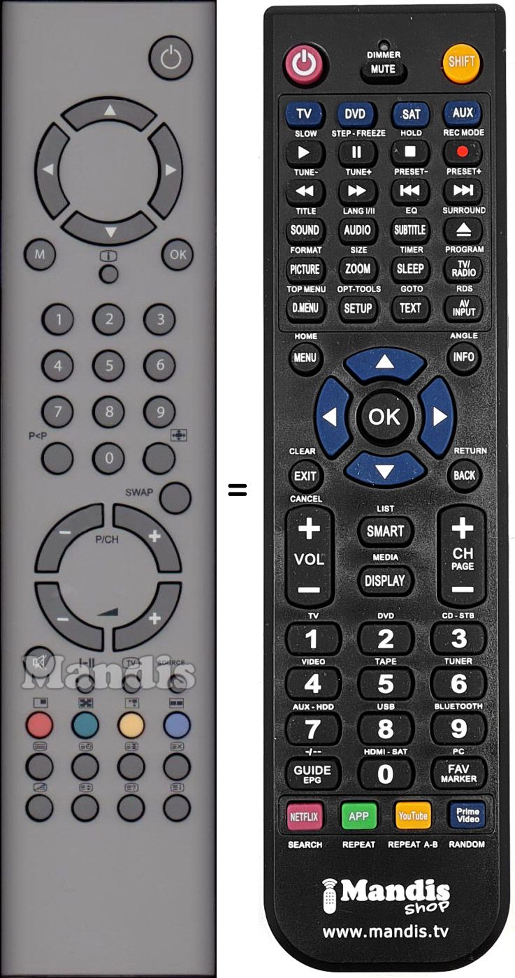 Es handelt sich jedoch nicht um eine Universalfernbedienung sondern um eine Fernbedienung die das Original ersetzt.