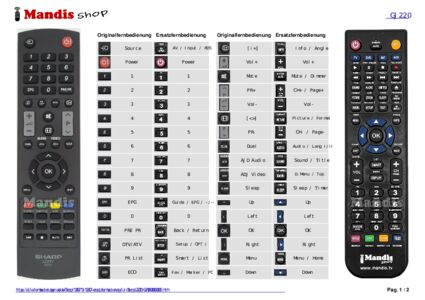 Ein Dokument ist enthalten, um die Verwendung der neuen Fernbedienung zu erleichtern, indem es die Tastenbelegung zeigt.