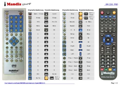 Ein Dokument ist enthalten, um die Verwendung der neuen Fernbedienung zu erleichtern, indem es die Tastenbelegung zeigt.