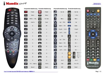 Ein Dokument ist enthalten, um die Verwendung der neuen Fernbedienung zu erleichtern, indem es die Tastenbelegung zeigt.