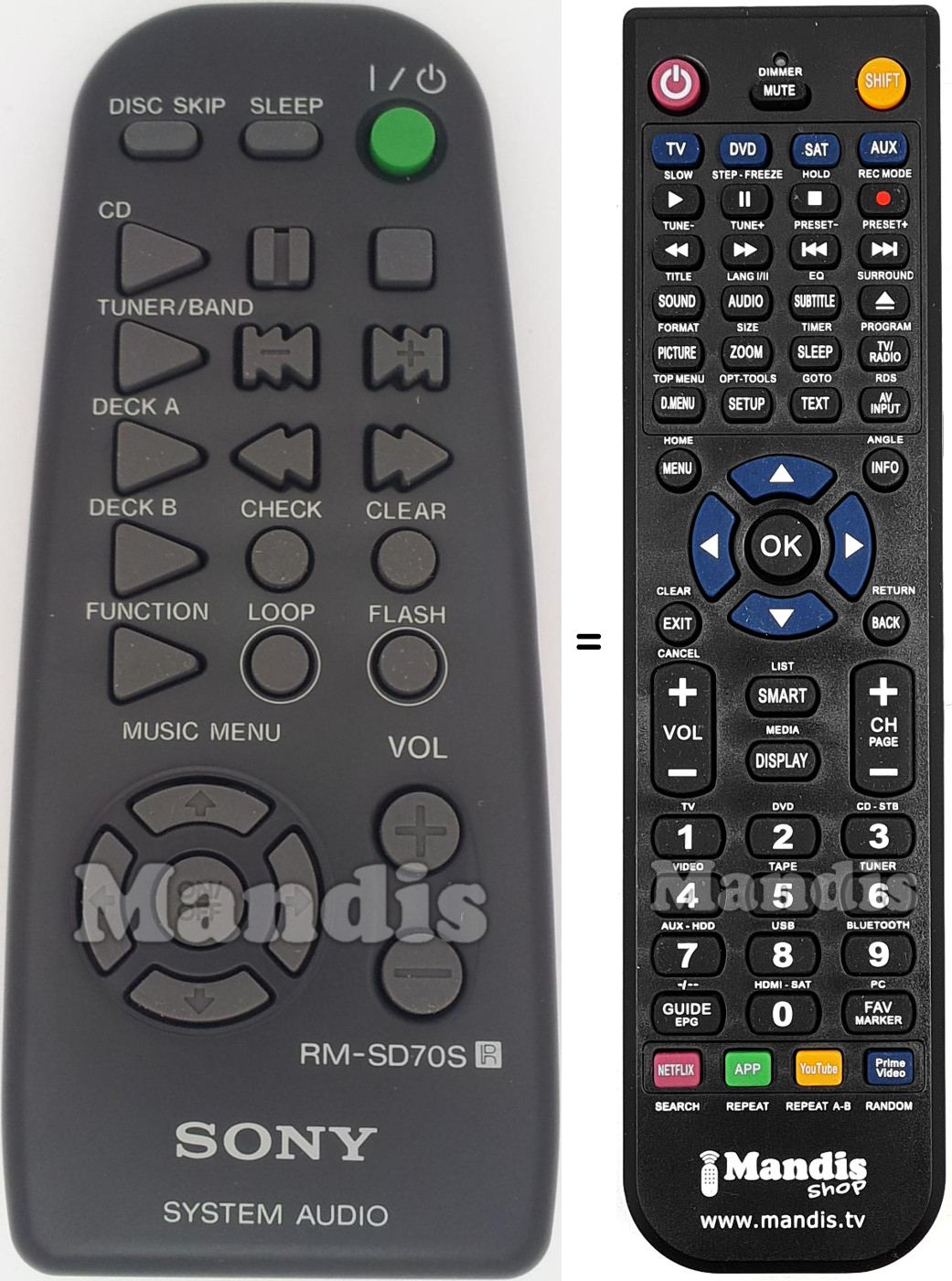 Diese Fernbedienung ersetzt Ihre RMSD70S in vollem Umfang und bietet alle Funktionen des Originals.