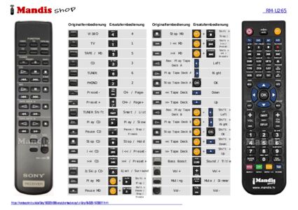 Diese Fernbedienung ersetzt Ihre RM-U265 (147363311) in vollem Umfang und bietet alle Funktionen des Originals.
