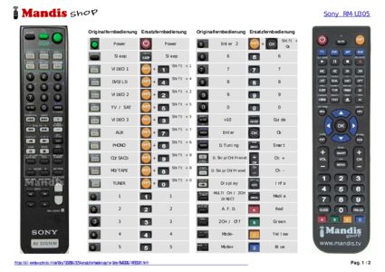 Diese Fernbedienung ersetzt Ihre RM-U305C (147655241) in vollem Umfang und bietet alle Funktionen des Originals.