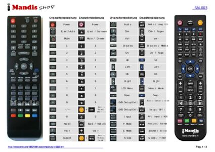 Ein Dokument ist enthalten, um die Verwendung der neuen Fernbedienung zu erleichtern, indem es die Tastenbelegung zeigt.