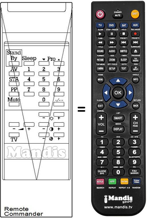 Es handelt sich jedoch nicht um eine Universalfernbedienung sondern um eine Fernbedienung die das Original ersetzt.