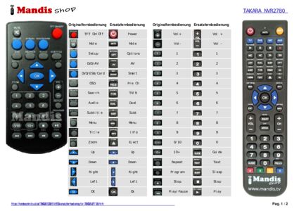 Ein Dokument ist enthalten, um die Verwendung der neuen Fernbedienung zu erleichtern, indem es die Tastenbelegung zeigt.