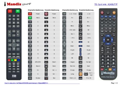 Ein Dokument ist enthalten, um die Verwendung der neuen Fernbedienung zu erleichtern, indem es die Tastenbelegung zeigt.
