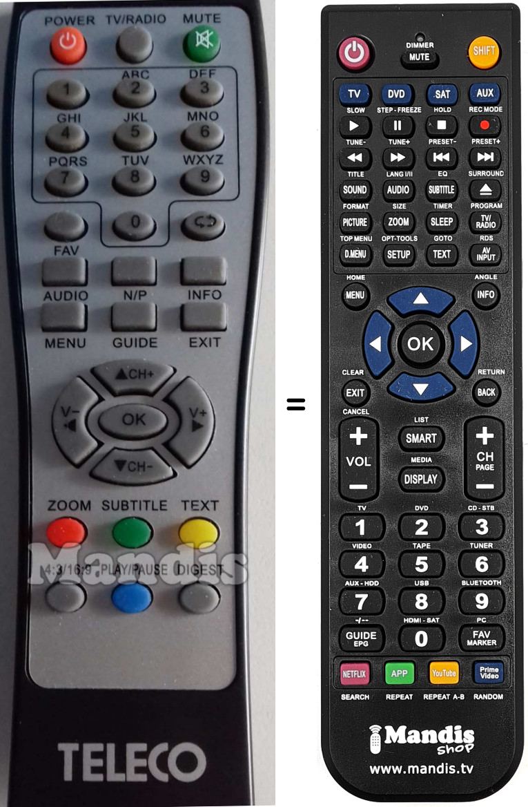 Die Fernbedienung ersetzt das Original RDT1000CPVR in der Gesamtheit seiner Funktionen.