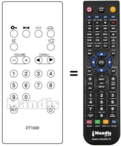 Fernbedienung, die das Original und die Gesamtheit seiner Funktionen, vollständig ersetzt.