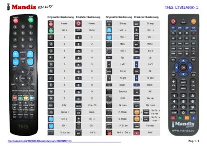 Ein Dokument ist enthalten, um die Verwendung der neuen Fernbedienung zu erleichtern, indem es die Tastenbelegung zeigt.