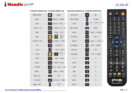 Ein Dokument ist enthalten, um die Verwendung der neuen Fernbedienung zu erleichtern, indem es die Tastenbelegung zeigt.