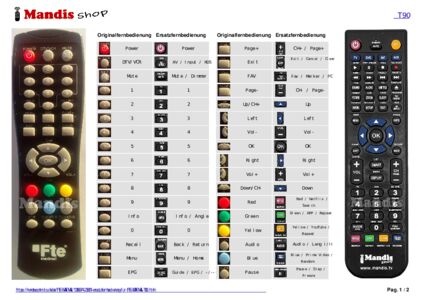 Ein Dokument ist enthalten, um die Verwendung der neuen Fernbedienung zu erleichtern, indem es die Tastenbelegung zeigt.