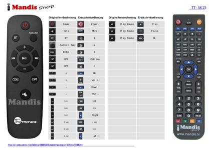 Diese Fernbedienung ersetzt Ihre TT-SK15 in vollem Umfang und bietet alle Funktionen des Originals.