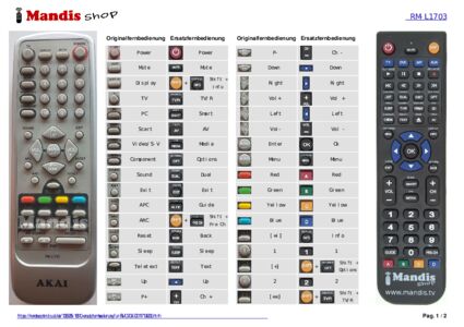 Ein Dokument ist enthalten, um die Verwendung der neuen Fernbedienung zu erleichtern, indem es die Tastenbelegung zeigt.