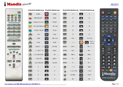 Ein Dokument ist enthalten, um die Verwendung der neuen Fernbedienung zu erleichtern, indem es die Tastenbelegung zeigt.