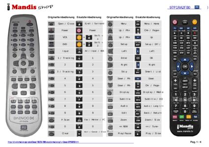Diese Fernbedienung ersetzt die meisten Funktionen Ihres 97P1RA2FB1. Es ist keine Universalfernbedienung, sondern eine Kopie mit den meisten Tasten und Funktionen Ihres Originals.