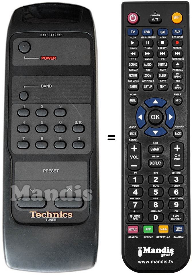 Die Fernbedienung ersetzt das Original RAK-ST106WH in der Gesamtheit seiner Funktionen.