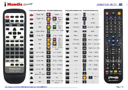 Ein Dokument ist enthalten, um die Verwendung der neuen Fernbedienung zu erleichtern, indem es die Tastenbelegung zeigt.