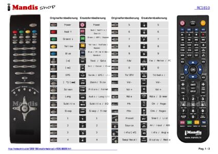 Ein Dokument ist enthalten, um die Verwendung der neuen Fernbedienung zu erleichtern, indem es die Tastenbelegung zeigt.
