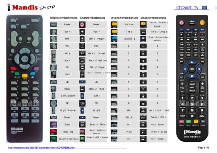 Diese Fernbedienung ersetzt Ihre CTC20NT (05THO0230004) in vollem Umfang und bietet alle Funktionen des Originals.