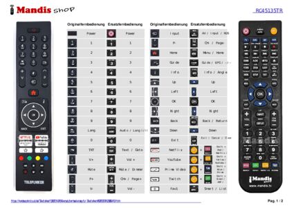 Ein Dokument ist enthalten, um die Verwendung der neuen Fernbedienung zu erleichtern, indem es die Tastenbelegung zeigt.