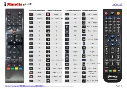 Ein Dokument ist enthalten, um die Verwendung der neuen Fernbedienung zu erleichtern, indem es die Tastenbelegung zeigt.