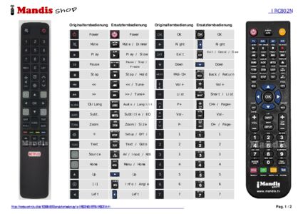 Ein Dokument ist enthalten, um die Verwendung der neuen Fernbedienung zu erleichtern, indem es die Tastenbelegung zeigt.