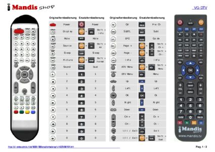 Diese Fernbedienung ersetzt Ihre VG-DTV (08011574) in vollem Umfang und bietet alle Funktionen des Originals.