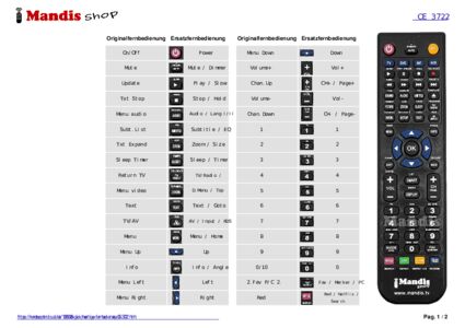 Ein Dokument ist enthalten, um die Verwendung der neuen Fernbedienung zu erleichtern, indem es die Tastenbelegung zeigt.