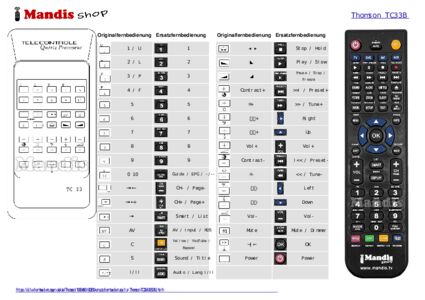 Diese Fernbedienung ersetzt Ihre TC33T (10155360) in vollem Umfang und bietet alle Funktionen des Originals.