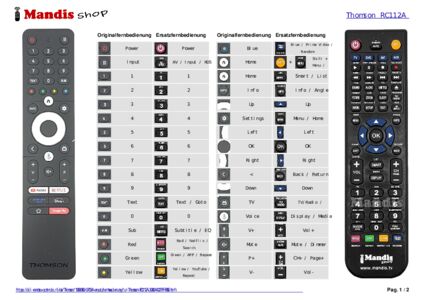 Home > Marken > Fernbedienungen Thomson > Fernbedienung für THOMSON RC112A (306044027FHUN0)