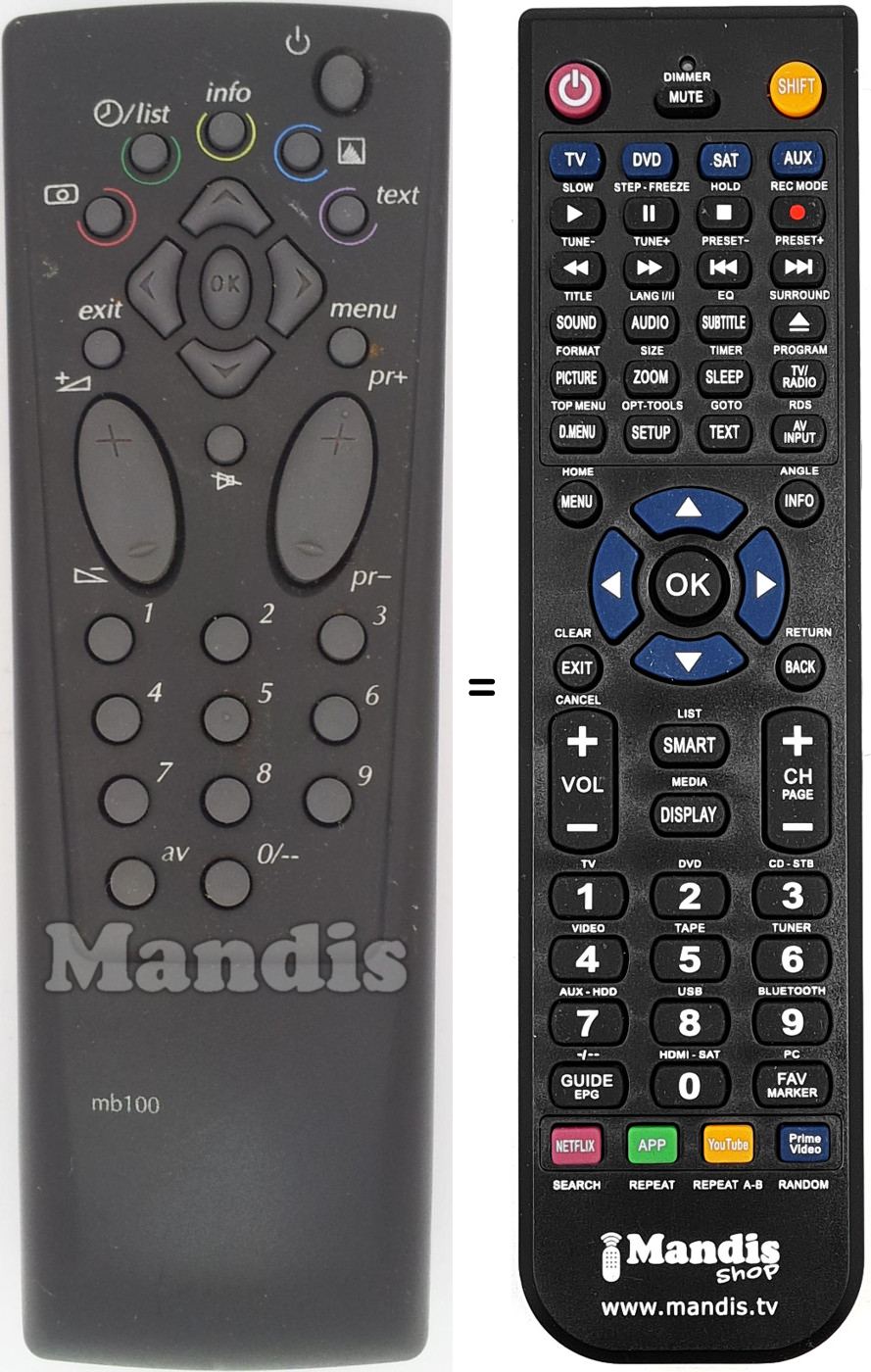 Es handelt sich jedoch nicht um eine Universalfernbedienung sondern um eine Fernbedienung die das Original ersetzt.