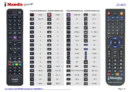 Diese Fernbedienung ersetzt Ihre CT-8073 (23405106) in vollem Umfang und bietet alle Funktionen des Originals.