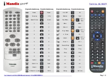 Ein Dokument ist enthalten, um die Verwendung der neuen Fernbedienung zu erleichtern, indem es die Tastenbelegung zeigt.