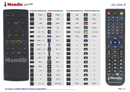Ein Dokument ist enthalten, um die Verwendung der neuen Fernbedienung zu erleichtern, indem es die Tastenbelegung zeigt.