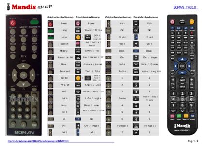 Ein Dokument ist enthalten, um die Verwendung der neuen Fernbedienung zu erleichtern, indem es die Tastenbelegung zeigt.
