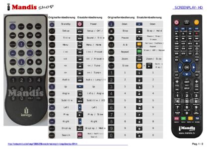Ein Dokument ist enthalten, um die Verwendung der neuen Fernbedienung zu erleichtern, indem es die Tastenbelegung zeigt.