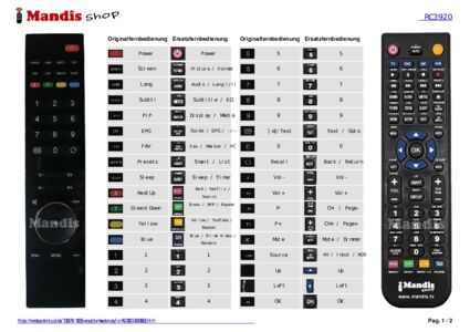 Ein Dokument ist enthalten, um die Verwendung der neuen Fernbedienung zu erleichtern, indem es die Tastenbelegung zeigt.
