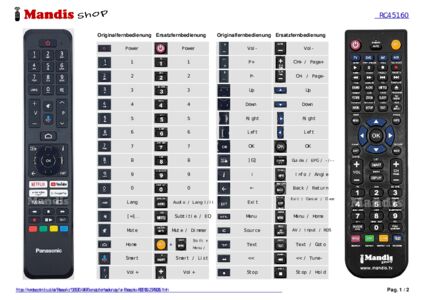 Ein Dokument ist enthalten, um die Verwendung der neuen Fernbedienung zu erleichtern, indem es die Tastenbelegung zeigt.