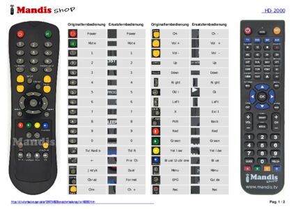 Diese Fernbedienung ersetzt Ihre HD-2000 in vollem Umfang und bietet alle Funktionen des Originals.