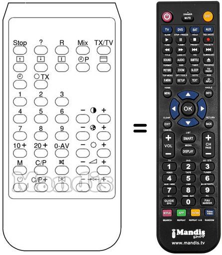 Fernbedienung, die das Original und die Gesamtheit seiner Funktionen, vollständig ersetzt.