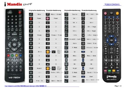 Diese Fernbedienung ersetzt Ihre TQD22CDVD001 in vollem Umfang und bietet alle Funktionen des Originals.