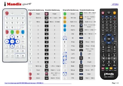 Ein Dokument ist enthalten, um die Verwendung der neuen Fernbedienung zu erleichtern, indem es die Tastenbelegung zeigt.