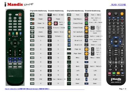 Ein Dokument ist enthalten, um die Verwendung der neuen Fernbedienung zu erleichtern, indem es die Tastenbelegung zeigt.