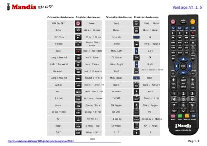 Ein Dokument ist enthalten, um die Verwendung der neuen Fernbedienung zu erleichtern, indem es die Tastenbelegung zeigt.
