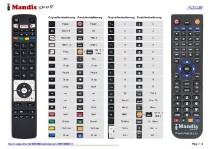 Ein Dokument ist enthalten, um die Verwendung der neuen Fernbedienung zu erleichtern, indem es die Tastenbelegung zeigt.
